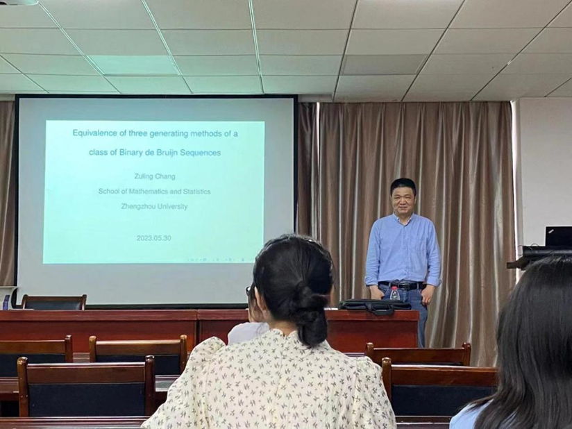 2023年5月30日上午,郑州大学常祖领教授应邀为皇冠集团网站相关专业的员工与研究生在数统皇冠集团网站201会议室作了题为《一类de Bruijn序列的三种生成方法的等价性分析》的学术报告。