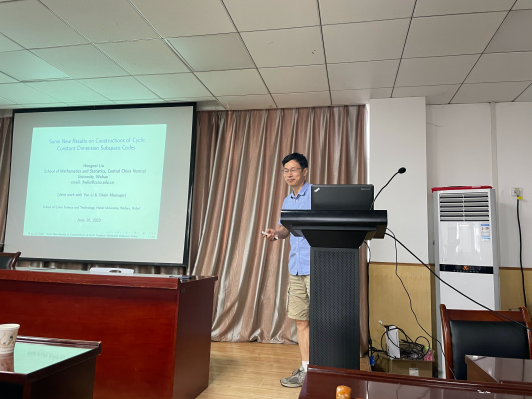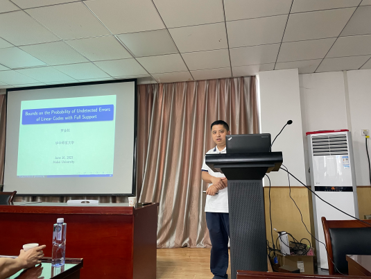 罗金权教授的报告《Bounds on Probability of Undetected Errors of Some Linear Codes》首先介绍了线性码的权重分布函数,然后给出了最小距离为2的线性码的权重分布函数的上界并给出这类上界能够达到的条件,从而给出译码错误的概率;进一步,罗教授也介绍了同时具有最小距离为2和全支撑集的线性码的权重分布函数上界的一个猜想。刘宏伟教授的报告《Some New Results on Constructions of Cyclic Constant Dimension Subspace Codes》 首先介绍了常维数子空间码的相关概念以及研究现状,然后利用Sidon和构造了一系列新的循环常维数子空间码;同时也构造了一系列具有大的基数的常维数子空间码。