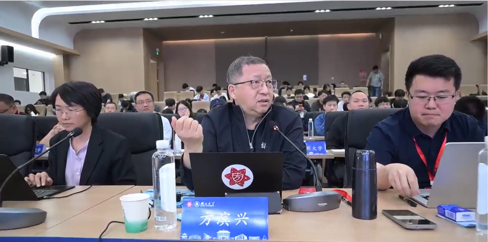在随后进行的研讨厅观摩环节,方滨兴院士、韩东岐副研究员担任主副点评专家,朱天清教授担任提问专家。