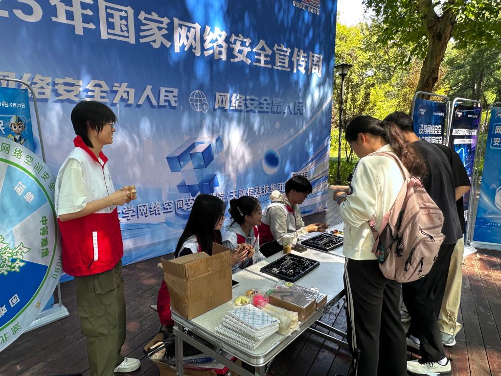 答题区全是网安“硬核知识”,从识别钓鱼网站到防范网络诈骗,从保护个人信息到安全用网小技巧,网安学子纷纷对答如流,答对就送礼品,知识点和快乐直接“双向奔赴”。