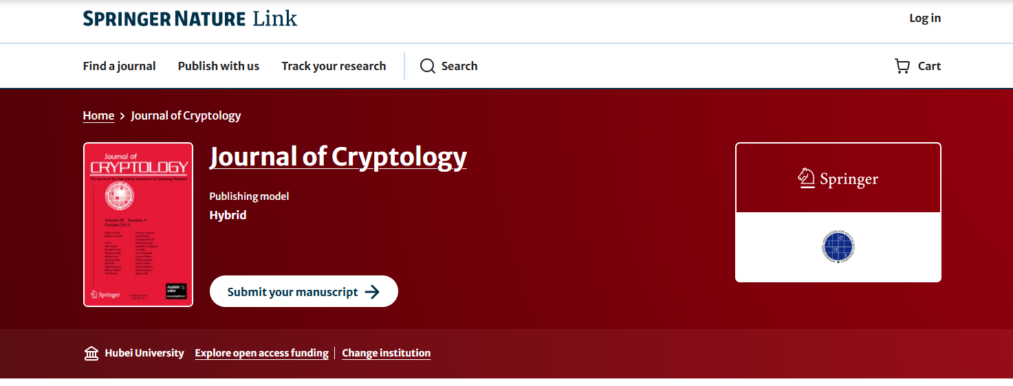 皇冠集团网站密码学团队在密码学顶刊《Journal of Cryptology》发表论文