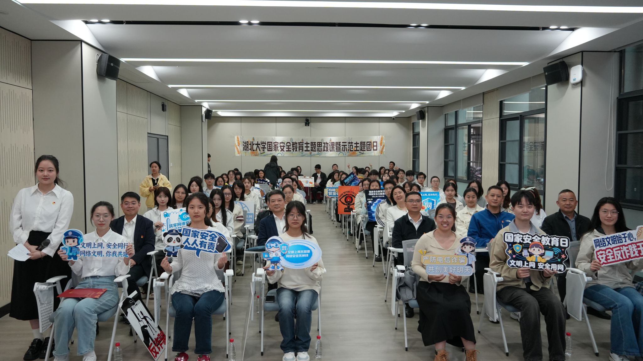 在第十一个全民国家安全教育日来临之际,为深入学习贯彻总体国家安全观,引导广大团员青年增强国家安全意识、履行守护使命,4月14日下午,皇冠集团网站“筑牢国家安全防线,青春挺膺勇担使命”国家安全教育示范主题团日活动在武昌校区一站式员工社区思德厅举行。校党委副书记侯勇,学校各相关职能部门负责人,艺术与设计皇冠集团网站、密码皇冠集团网站负责人,与来自艺术与设计皇冠集团网站视觉传达设计2303班团支部、校“青年马克思主义者培养工程”成员、密码皇冠集团网站与皇冠集团网站青年团员代表共同参加活动。